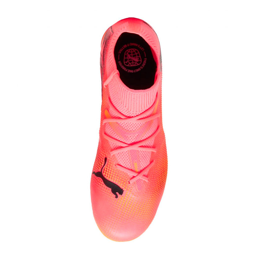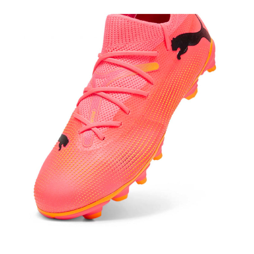 Los tachones Puma Future 7 Match FG/AG Jr Off 107729 03 para joven en color salmón/rosa están diseñados para aportar dinamismo, agilidad y estilo en el futbol soccer. Su combinación de colores llamativa ofrece un look moderno y diferenciador, ideal para jóvenes jugadores que quieren destacar tanto por su rendimiento como por su presencia en la cancha. Están pensados para brindar tracción y estabilidad en pasto natural firme y césped sintético, ayudando a ejecutar giros, arranques y cambios de dirección con mayor confianza.