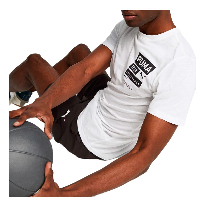 La playera Puma Graphic Tee Engineered Off 524199 02 en color blanco para hombre está diseñada para ofrecer comodidad y rendimiento durante tus entrenamientos y actividades deportivas. Su diseño ligero y transpirable permite una buena circulación del aire, ayudándote a mantenerte fresco tanto en rutinas de gimnasio como en sesiones de entrenamiento al aire libre.
