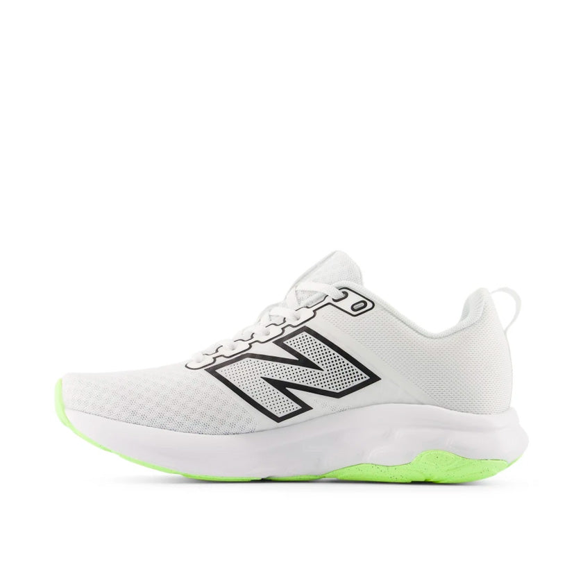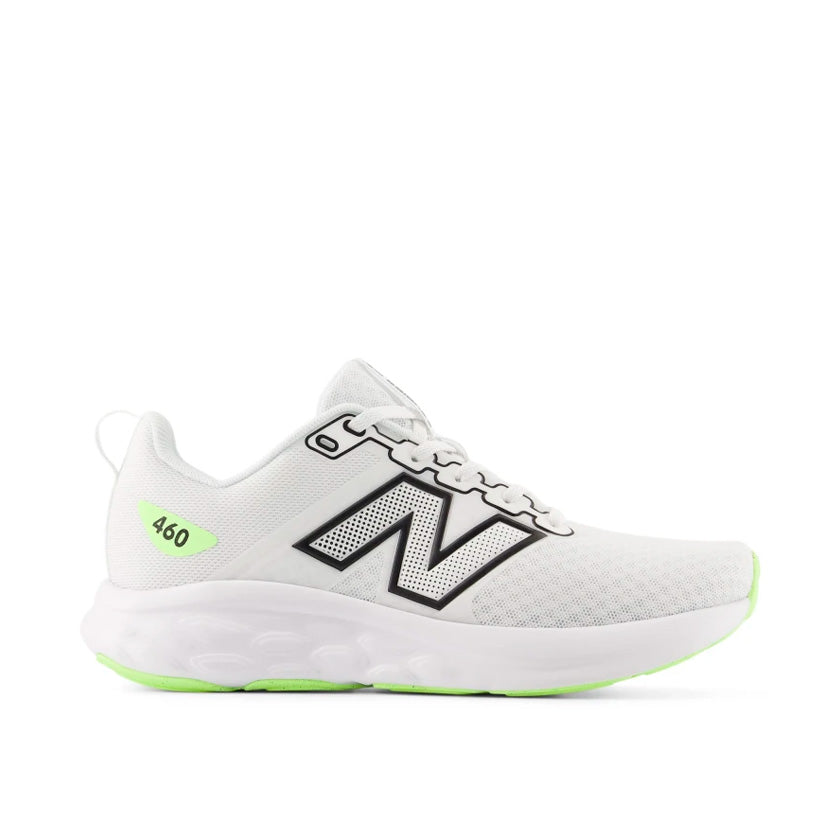 Los Tenis New Balance 460 W46097H en color blanco con logo en verde para mujer están diseñados para correr, ofreciendo una combinación ideal de ligereza, comodidad y soporte para entrenamientos diarios. Son una excelente opción para quienes buscan un calzado funcional que también pueda utilizarse para caminatas o actividades físicas cotidianas.