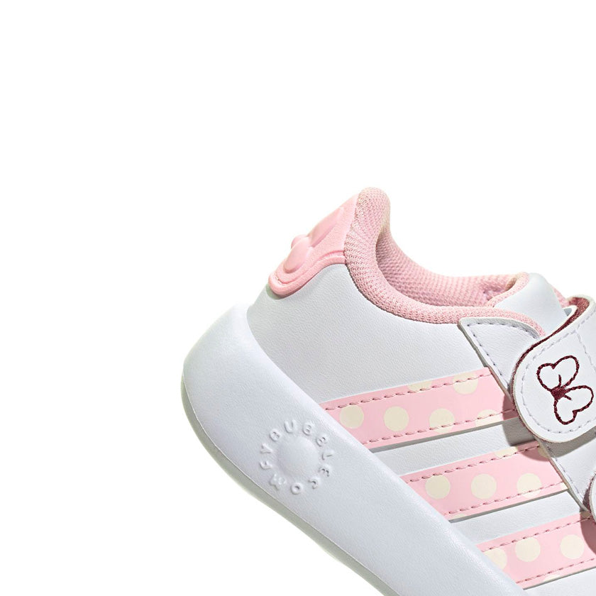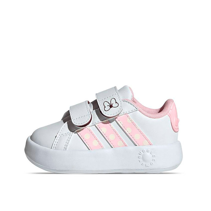 Con un lazo en 3D de Minnie Mouse de Disney en el talón, estas zapatillas adidas para bebés aportan un aire divertido a cualquier outfit. El suave exterior de material sintético es muy duradero para los más pequeños, y las correas ajustables de cierre por contacto hacen que estas zapatillas sean fáciles de poner y quitar. El forro interno suave y la suela blanda proporcionan comodidad total a sus pequeños pies