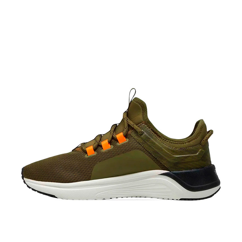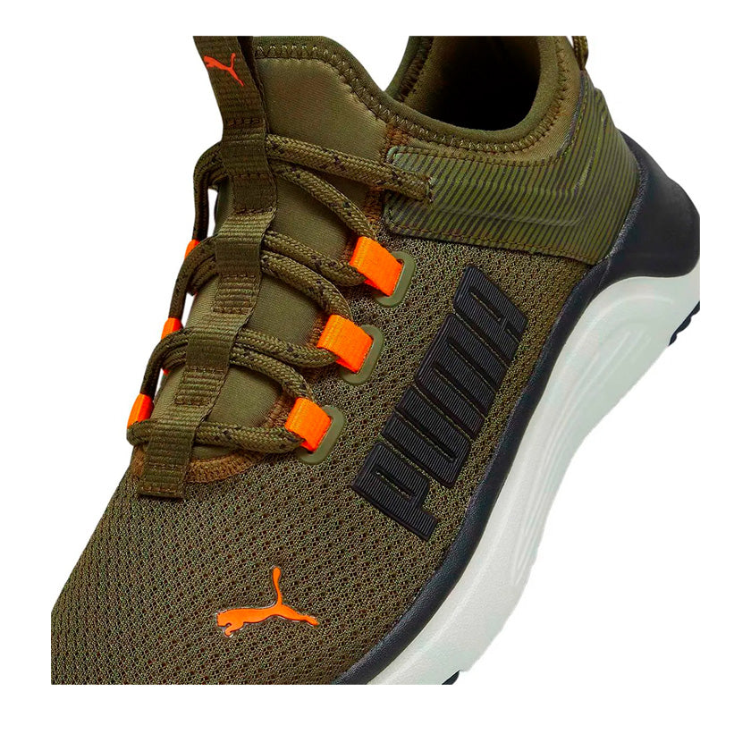 Puma Softride Astro Slip Off 378800 02 son tenis de entrenamiento para hombre con un estilo moderno y funcional. Su color verde olivo con detalles en naranja les da un look atrevido y versátil, ideal tanto para entrenamientos como para un uso activo diario. La construcción slip-on (sin agujetas) ofrece comodidad al calzarlos y un ajuste cómodo y rápido.