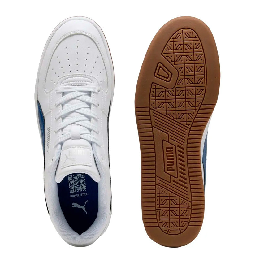 Los tenis Puma Caven 2.0 392290 79 en color blanco con toques en azul para hombre son una opción ideal para uso casual diario, combinando estilo moderno con comodidad. Su diseño versátil permite integrarlos fácilmente a distintos outfits urbanos, perfectos para caminar por la ciudad, salidas informales o jornadas fuera de casa sin perder confort ni estilo.