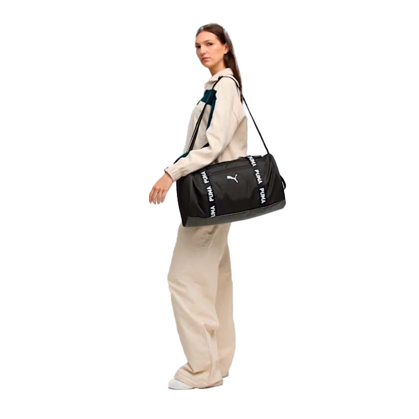La Puma At Ess Barrel 091849 01 es una maleta deportiva ideal para entrenamiento, diseñada para ofrecer comodidad, espacio y estilo. Su color negro la hace versátil y elegante, perfecta para llevar al gimnasio, actividades deportivas o viajes cortos. Su forma cilíndrica clásica garantiza una distribución práctica del espacio interior.