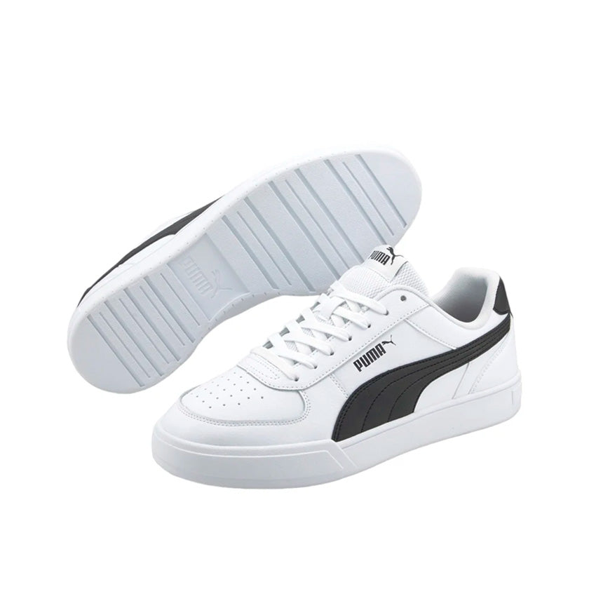 Puma Caven Off 380810 02 son tenis casuales para hombre que combinan estilo clásico con versatilidad para el día a día. Su diseño en color blanco con detalles en negro les da un aspecto moderno y limpio que se adapta fácilmente a diferentes outfits urbanos o informales.