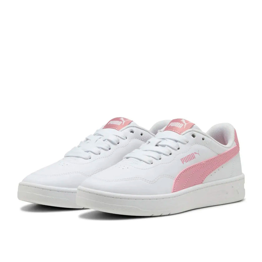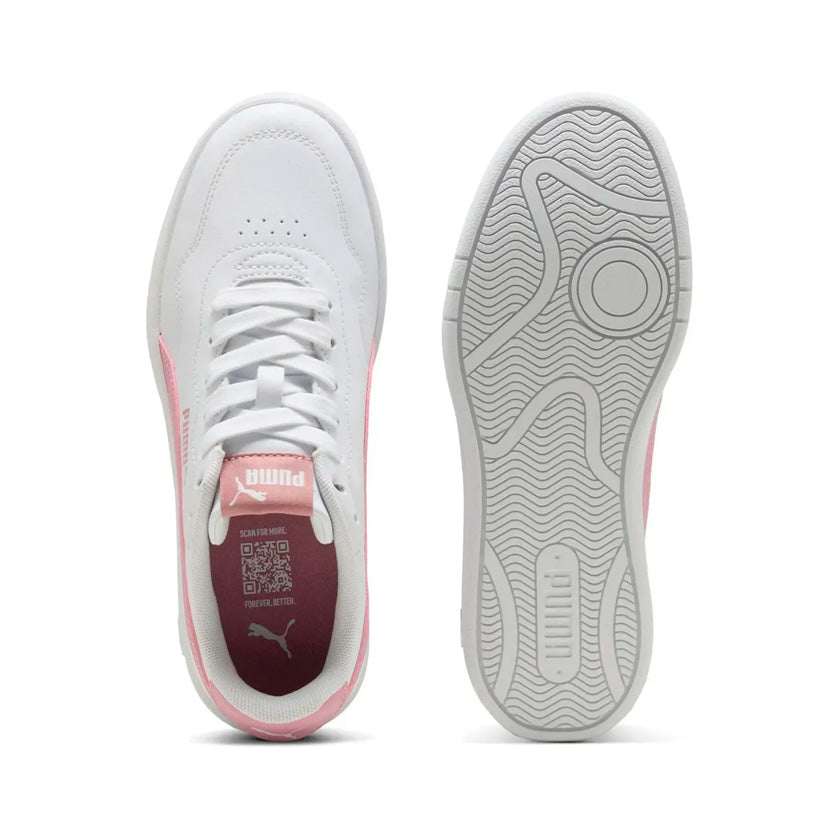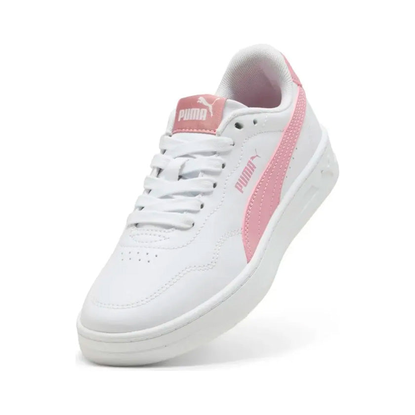 Puma Court Lally Jr 402304 07 son tenis casuales diseñados especialmente para mujeres jóvenes que buscan estilo, comodidad y versatilidad en su calzado diario. Su diseño en blanco con toques de color rosa aporta un look fresco, femenino y fácil de combinar con diferentes outfits.