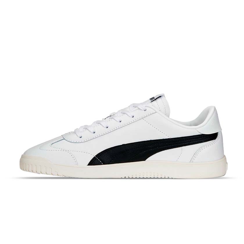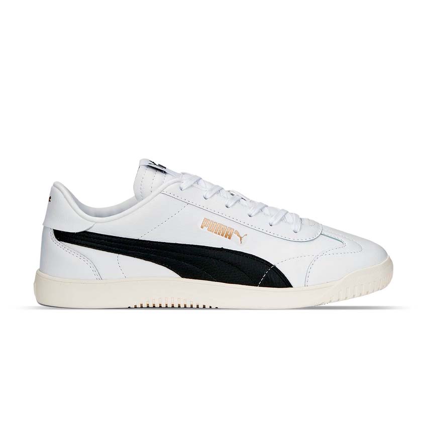 Los Puma Club 5V5 389406 03 son tenis casuales para hombre que combinan estilo clásico y comodidad. Presentan un diseño en color blanco con detalles en negro, resaltando su icónica punta en T de piel que le da un look retro y versátil. Son ideales para el uso diario, fáciles de combinar y con el sello de calidad de Puma.