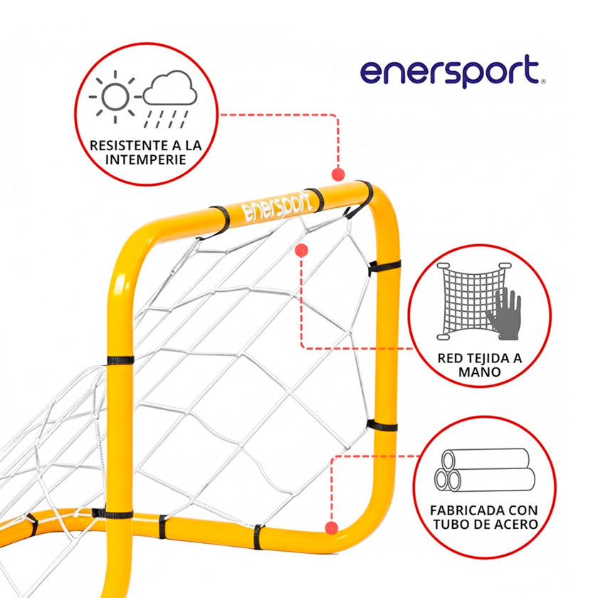 Dale vida al juego con la Portería de Fútbol Enersport 1070 en amarillo, una portería resistente y vibrante que transforma cualquier espacio al aire libre en una cancha de fútbol lista para la acción. Diseñada para ofrecer diversión, entrenamiento y durabilidad, esta portería es la opción perfecta tanto para jugadores en desarrollo como para aficionados del fútbol