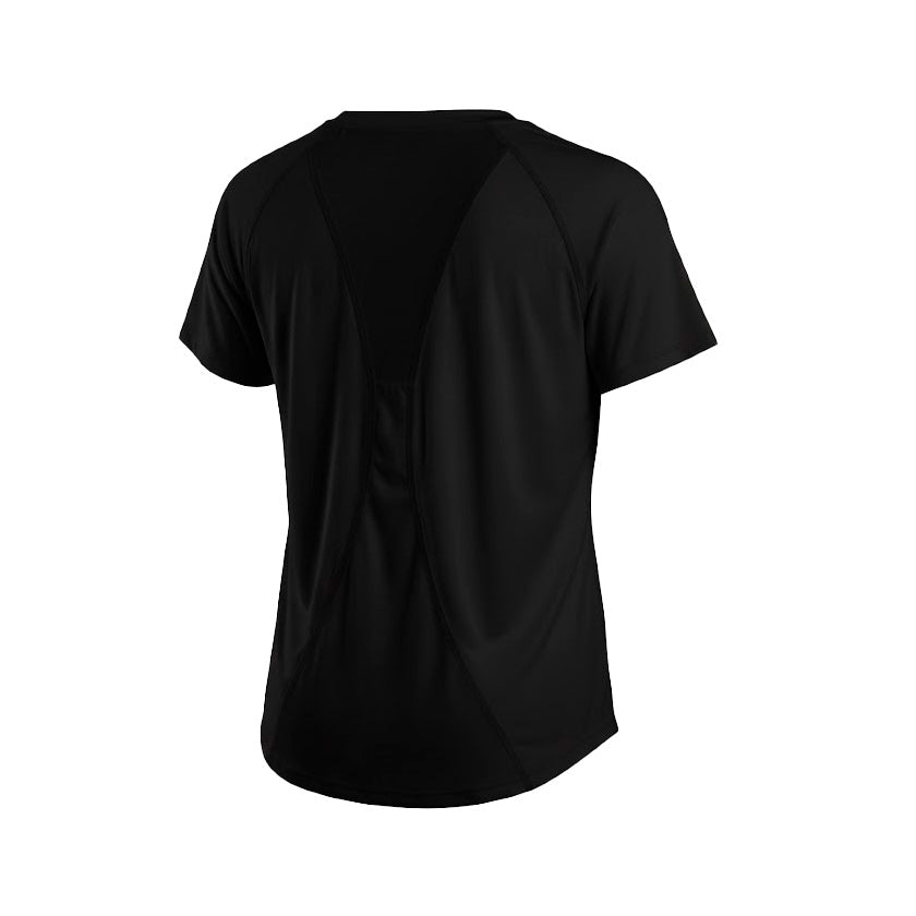 Está confeccionada en tela ligera y transpirable, que ayuda a mantenerte fresca y cómoda durante el ejercicio. Su corte femenino permite libertad de movimiento, mientras que el cuello redondo y la manga corta ofrecen un ajuste práctico para cualquier rutina.