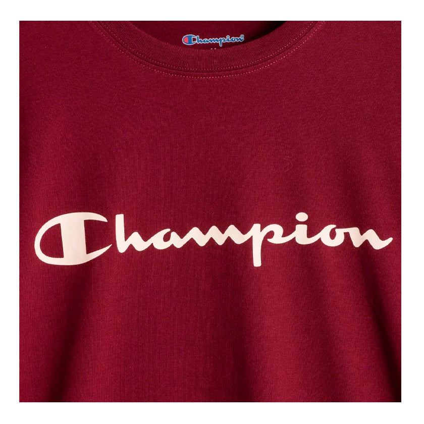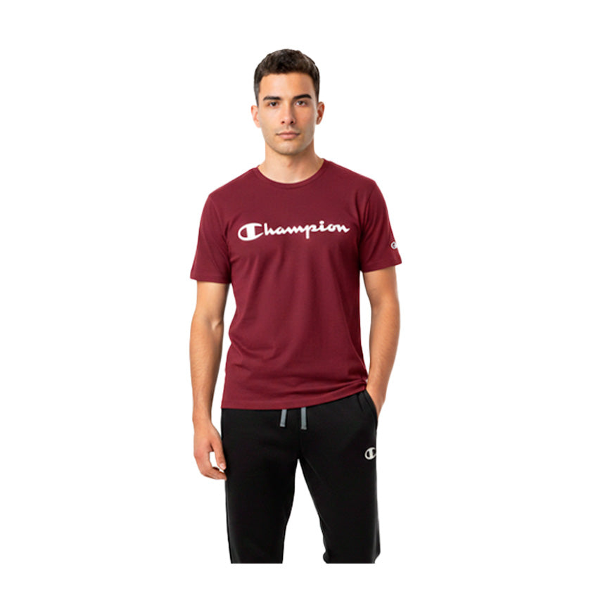 La playera Champion Script Tee para hombre en color vino es ideal para el uso casual diario, ofreciendo un estilo clásico con un toque moderno que se adapta fácilmente a diferentes outfits. Su diseño cómodo la convierte en una excelente opción para actividades cotidianas, salidas informales o para complementar un look relajado con identidad deportiva.