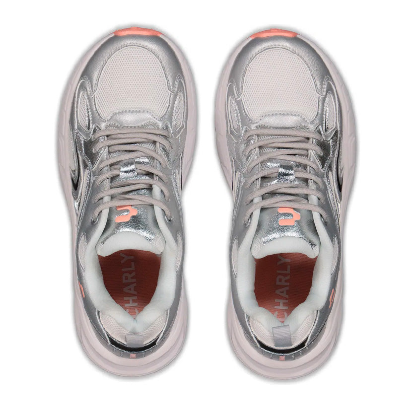 El calzado Charly para dama en color plata y rosa combina un estilo moderno, femenino y deportivo, ideal para el uso diario. Su diseño contemporáneo y detalles de color le dan un toque elegante que se adapta fácilmente a outfits casuales o urbanos.
