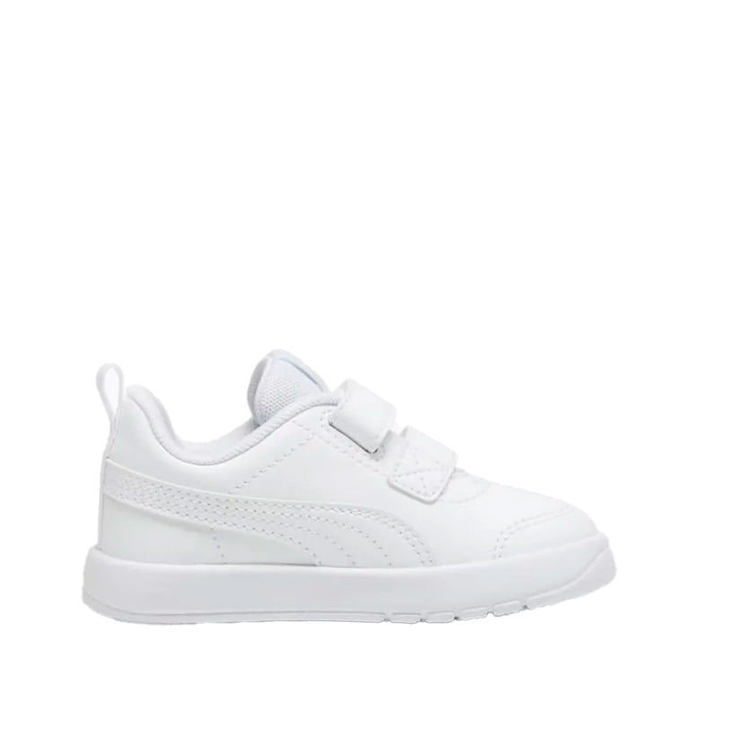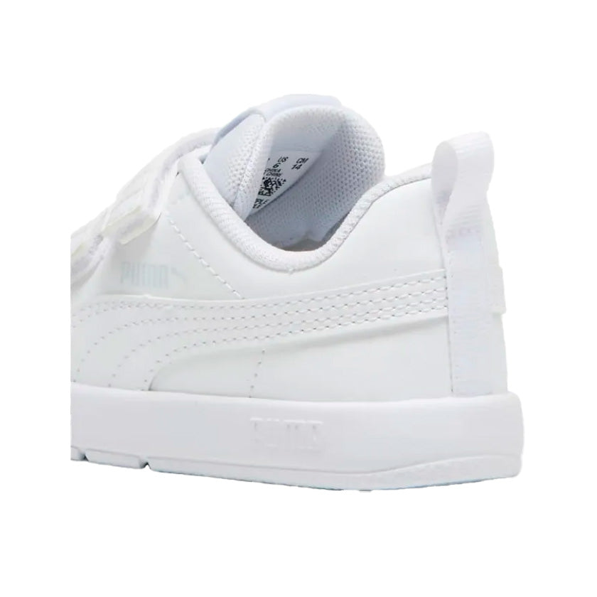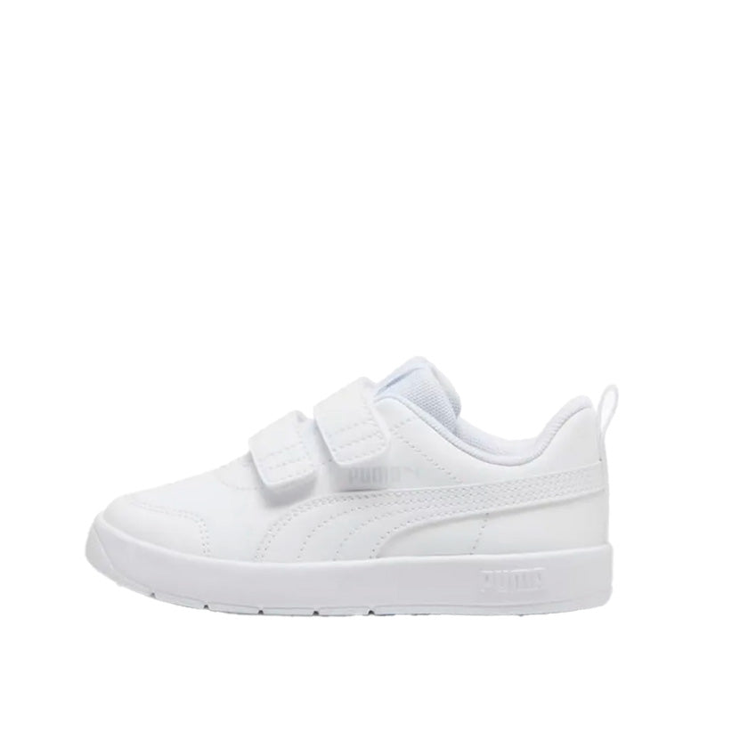 Los tenis Puma Courtflex V3 V INF 310252 02 para niño en color blanco con doble cierre de velcro son una opción práctica, cómoda y ligera para uso casual diario y actividades escolares o recreativas. Su diseño con cierres de velcro facilita que los pequeños se los pongan y quiten sin complicaciones, mientras que el estilo deportivo clásico aporta un look moderno y versátil que combina con distintos outfits infantiles.