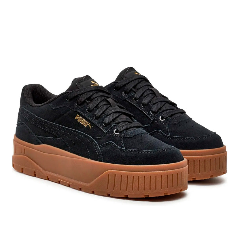 Los tenis Puma Karmen II Idol 397462 05 en color negro con suela café para mujer están diseñados para brindar estilo urbano con un toque moderno gracias a su plataforma. Son ideales para uso casual y diario, combinando comodidad y una silueta llamativa que eleva cualquier outfit sin perder el confort en cada paso.