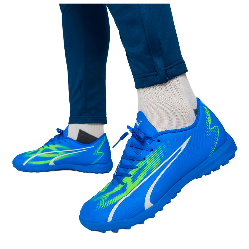 Los tachones Puma Ultra Play TT Off 107528 03 para hombre están diseñados para jugadores que buscan velocidad, precisión y un ajuste cómodo en cada jugada. Su combinación de color azul con toques en verde le da un estilo moderno y llamativo, ideal para destacar dentro de la cancha de fútbol rápido. Son una excelente opción para entrenamientos y partidos intensos donde la agilidad y el control marcan la diferencia.