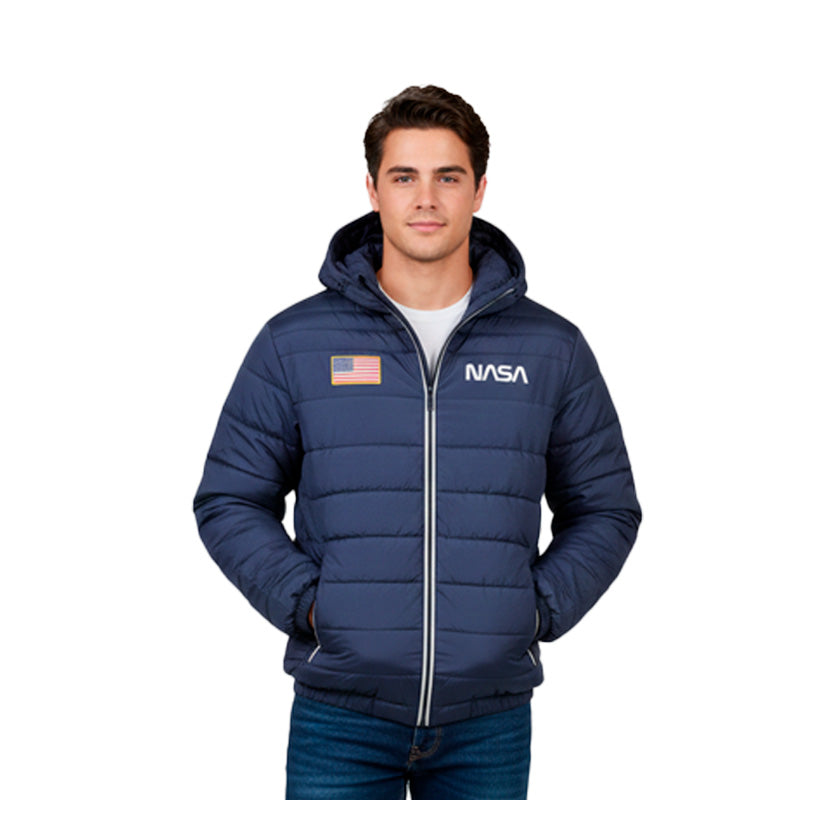 La Lasbro Chamarra Eli XG25004 es una prenda acolchada para hombre en color azul marino, diseñada para brindar calidez, estilo y comodidad. Su diseño con logo de la NASA en el pecho le da un toque moderno y distintivo, ideal para usar en temporadas frías o en salidas casuales con un look urbano y actual.