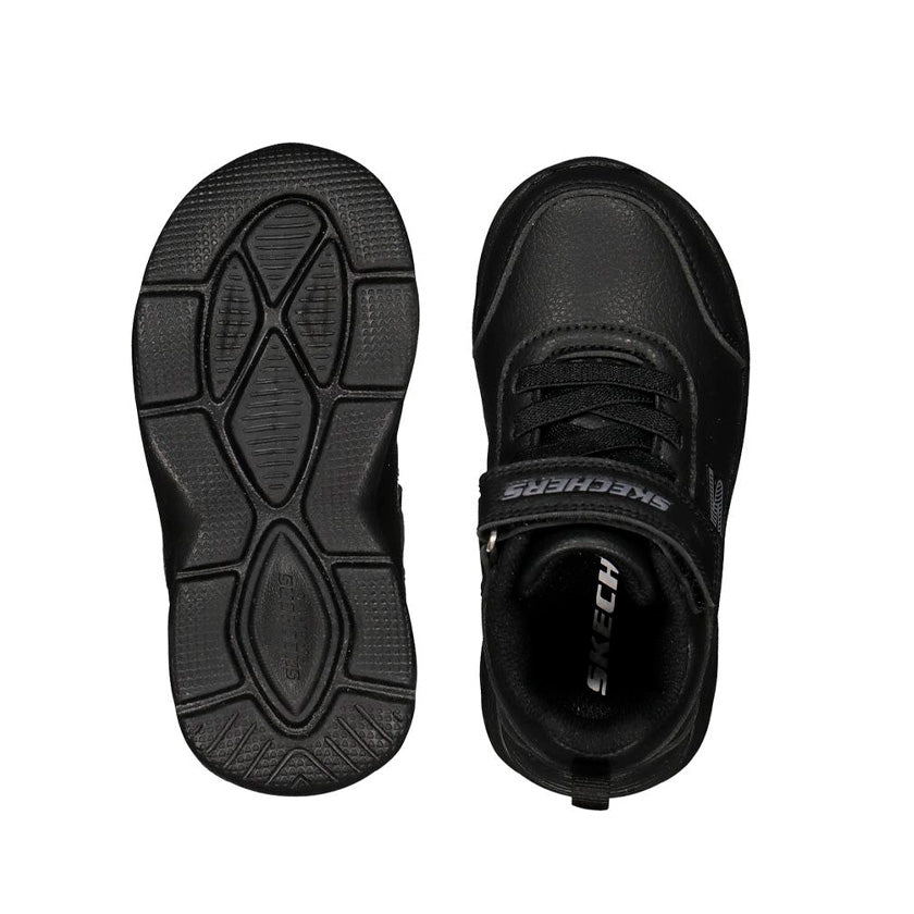 Los tenis Skechers Calzado Bebé NGO 24002NMXBBK en color totalmente negro para niño están diseñados para brindar comodidad, seguridad y facilidad al calzar, combinando cordones con una banda de velcro que facilita ponerlos y ajustarlos correctamente. Esta combinación permite que los más pequeños se muevan con confianza durante sus actividades diarias, juegos o salidas familiares.