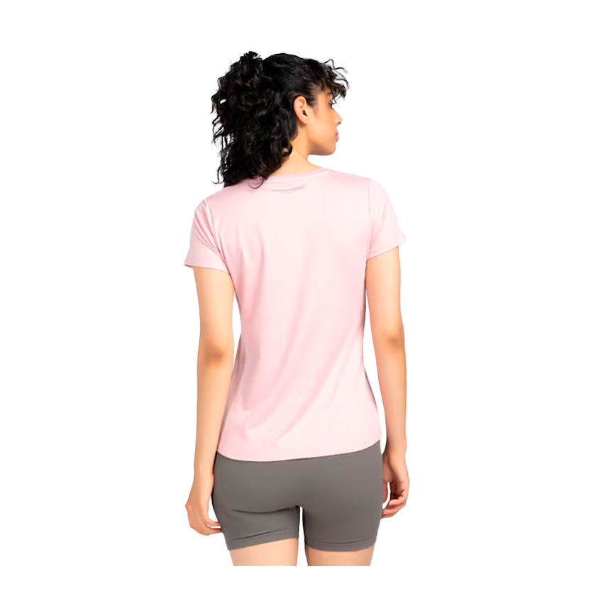 Su diseño de manga corta favorece la movilidad de brazos y hombros, mientras que su corte cómodo se adapta al cuerpo sin limitar el movimiento. El color rosa aporta un toque moderno y dinámico a tu outfit deportivo, perfecto para combinar con leggings, bikers o pants.