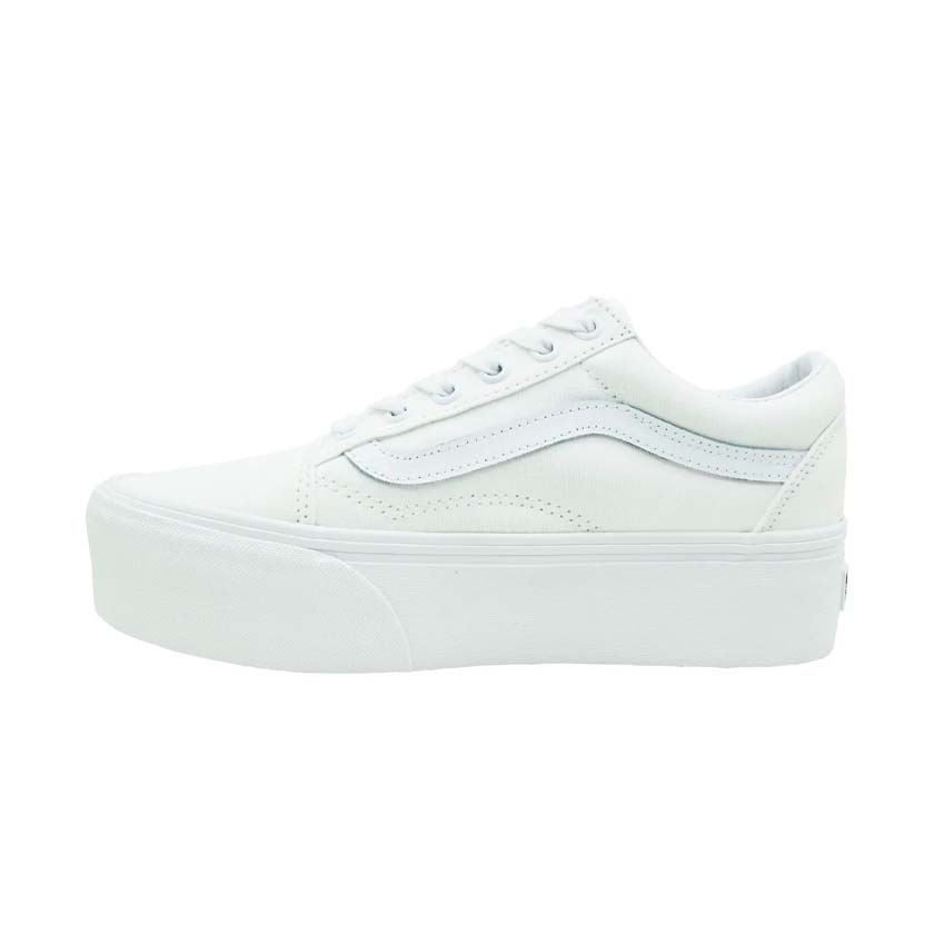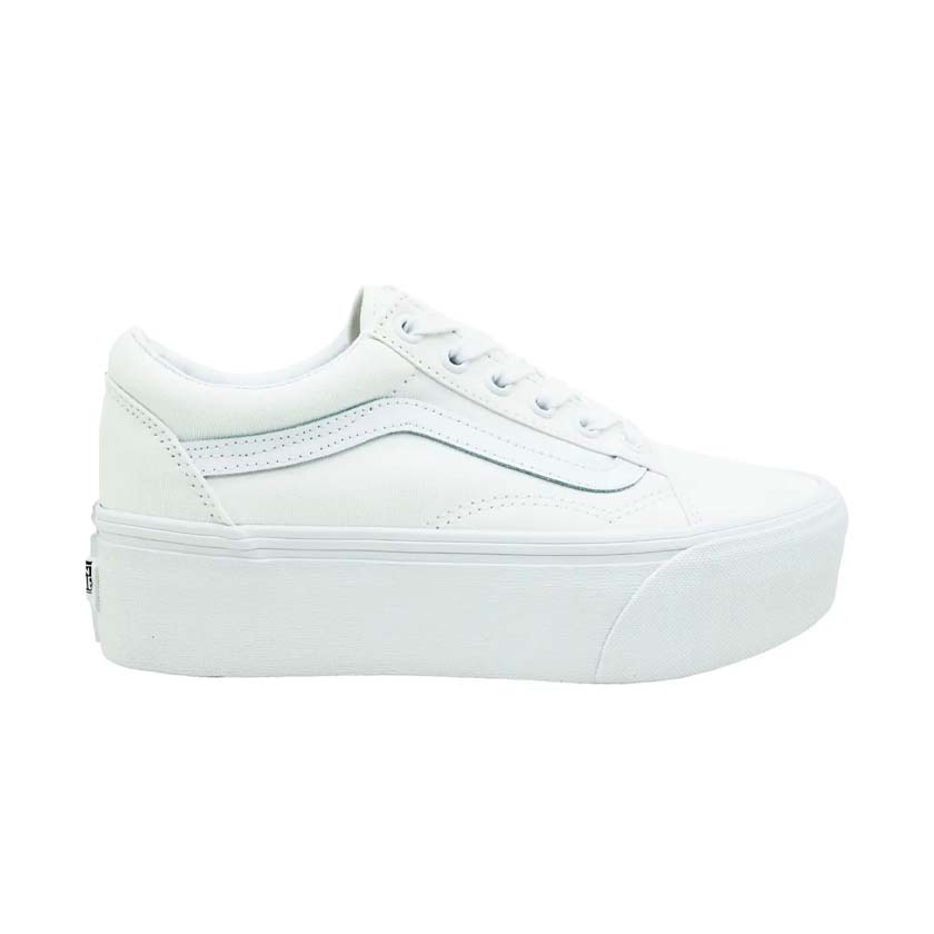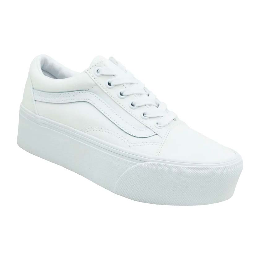 Los Vans Old Skool Stackform para mujer, modelo Vn0A7Q5Mw00, llegan en una versión totalmente blanca con plataforma. Este diseño combina la esencia clásica de la silueta Old Skool con un toque moderno gracias a su suela elevada, ofreciendo un look fresco, urbano y con mucha personalidad. Perfectos para quienes buscan comodidad sin dejar de lado el estilo.
