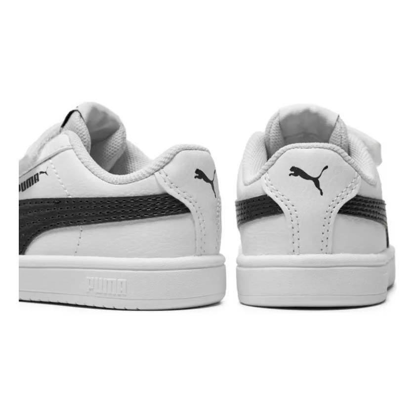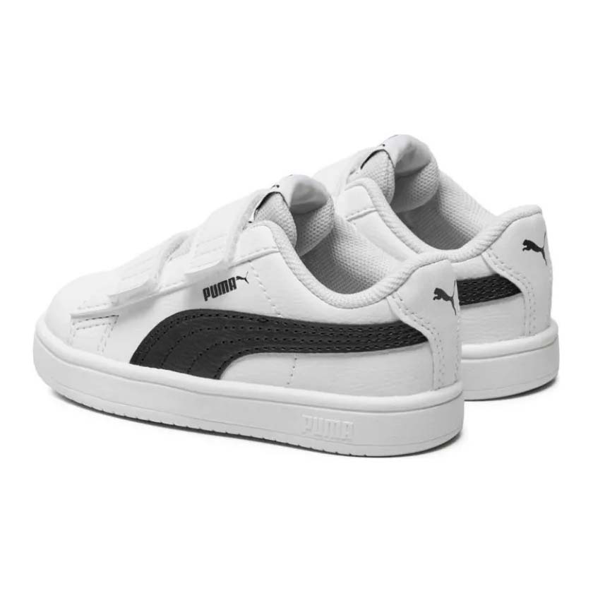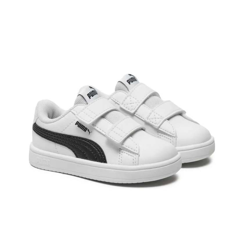 La línea infantil Rickie Classic V de Puma está diseñada para los más pequeños que buscan comodidad, estilo y practicidad en su calzado diario. Este modelo, en color blanco con detalles en negro y doble cierre de velcro, combina facilidad de uso con un look moderno y versátil ideal para uso casual.