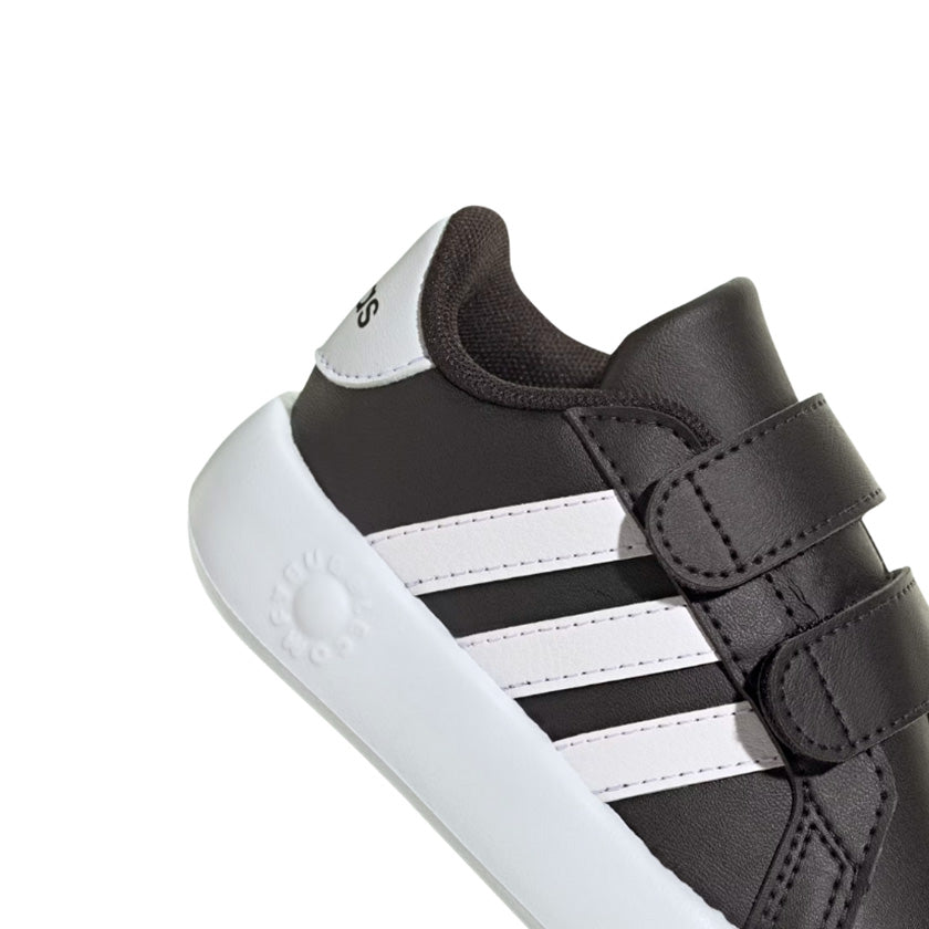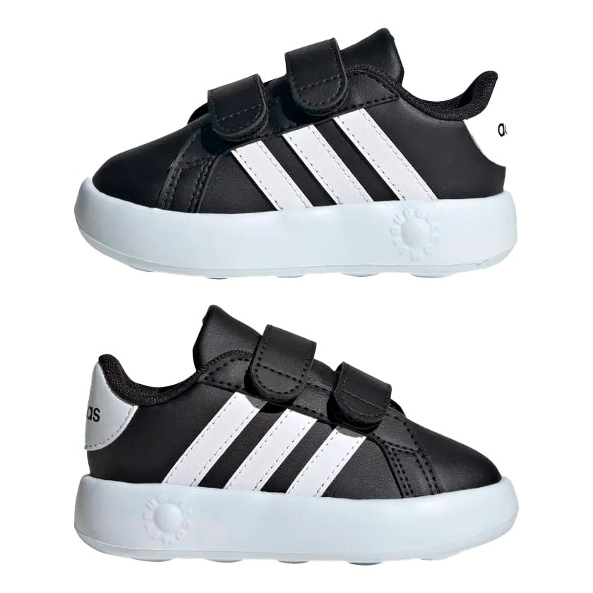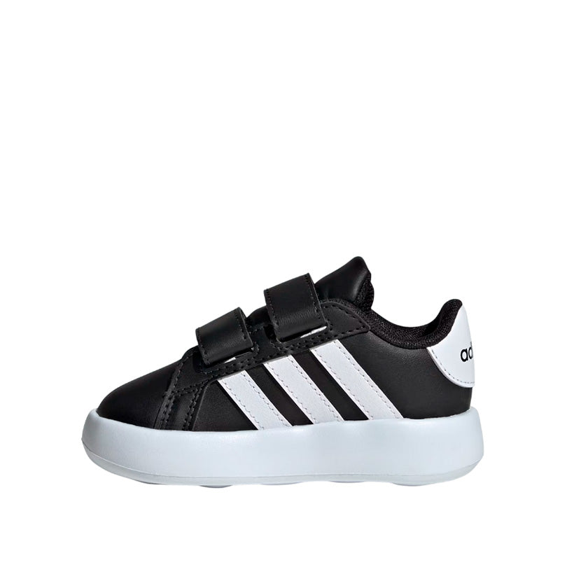 Los Tenis adidas Grand Court 2.0 CF I son la versión perfecta para los más pequeños, ofreciendo un estilo clásico de cancha con la comodidad del cierre de contacto (velcro). Son ideales para un calzado que se pone y se quita fácilmente.