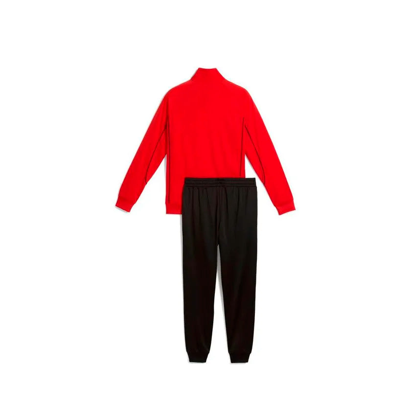 Conjunto deportivo de poliéster reciclado con chaqueta de cierre completo y cuello alto, más pantalón con cintura elástica y cordón. Diseño con líneas decorativas (“piping”) y bolsillos laterales. Ajuste cómodo, ideal para entrenar o usar casual.
