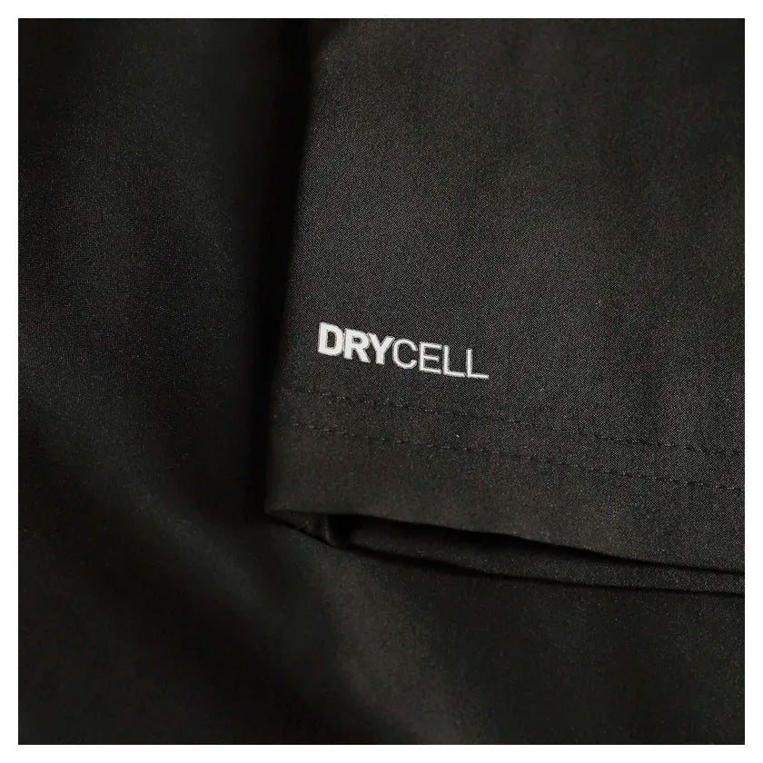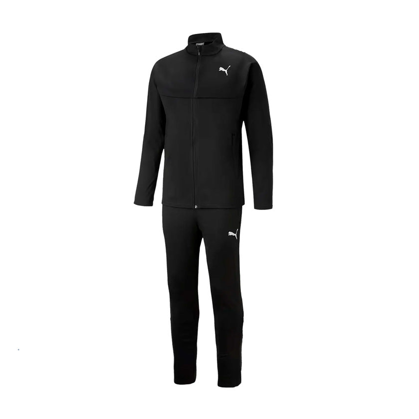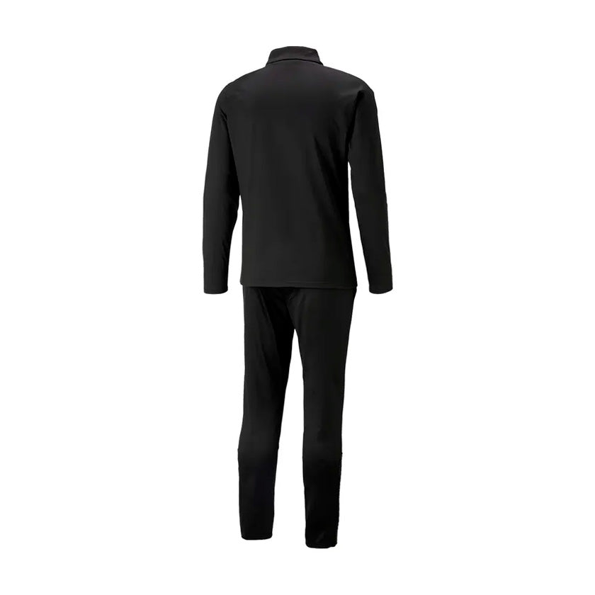 Es un conjunto deportivo negro, hecho en poliéster con tecnología dryCELL para evacuar el sudor. La chaqueta tiene cierre completo y puños elásticos. El pantalón tiene cinturilla elástica para un ajuste cómodo. Ideal para entrenamientos o uso casual.