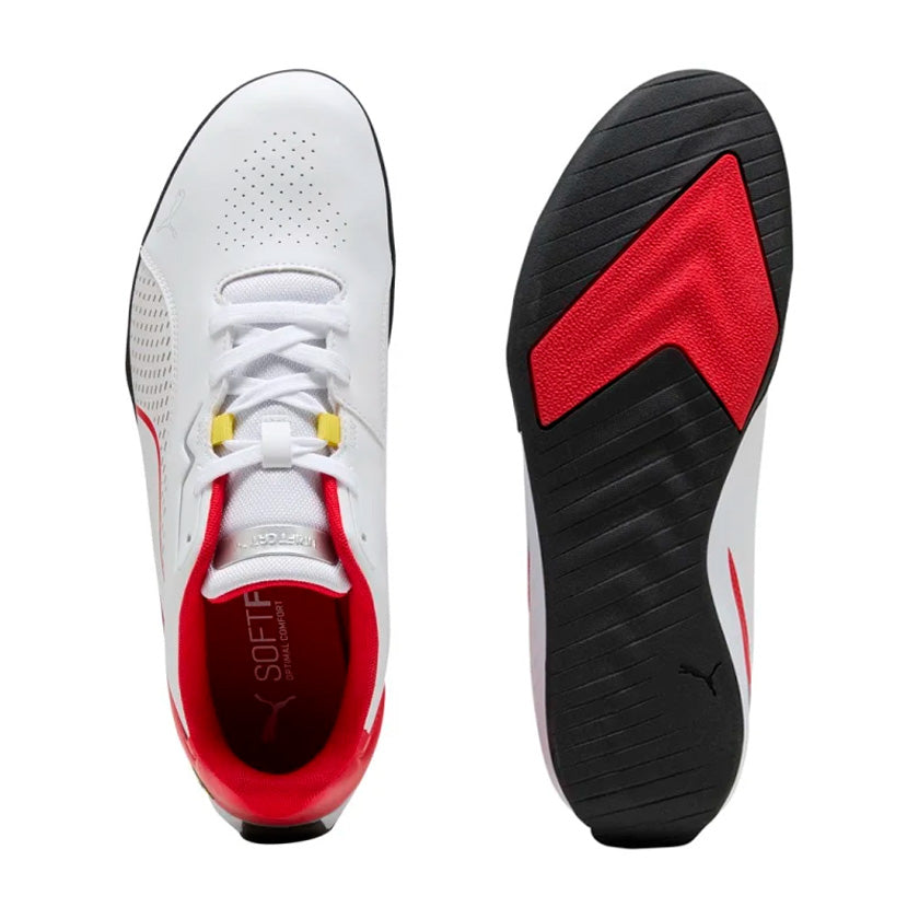 Los tenis Puma Ferrari Drift Cat 11 308613 04 en color blanco con detalles en rojo para hombre están diseñados para uso casual diario, combinando el estilo deportivo inspirado en la marca Ferrari con la comodidad que necesitas en tu día a día. Su diseño elegante y contemporáneo permite integrarlos fácilmente con jeans, pants o shorts, aportando un look moderno y con personalidad tanto en salidas informales como en actividades cotidianas.