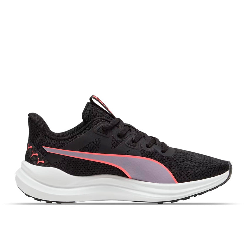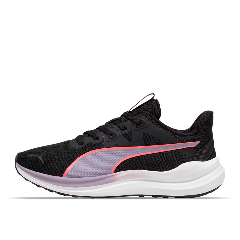 Puma Reflect Lite Off 378768 32 son tenis para hombre diseñados especialmente para entrenar, combinando funcionalidad deportiva con un estilo moderno. Su color negro con toques en morado les da un look dinámico y versátil, ideal tanto para tus rutinas de ejercicio como para actividades activas del día a día.